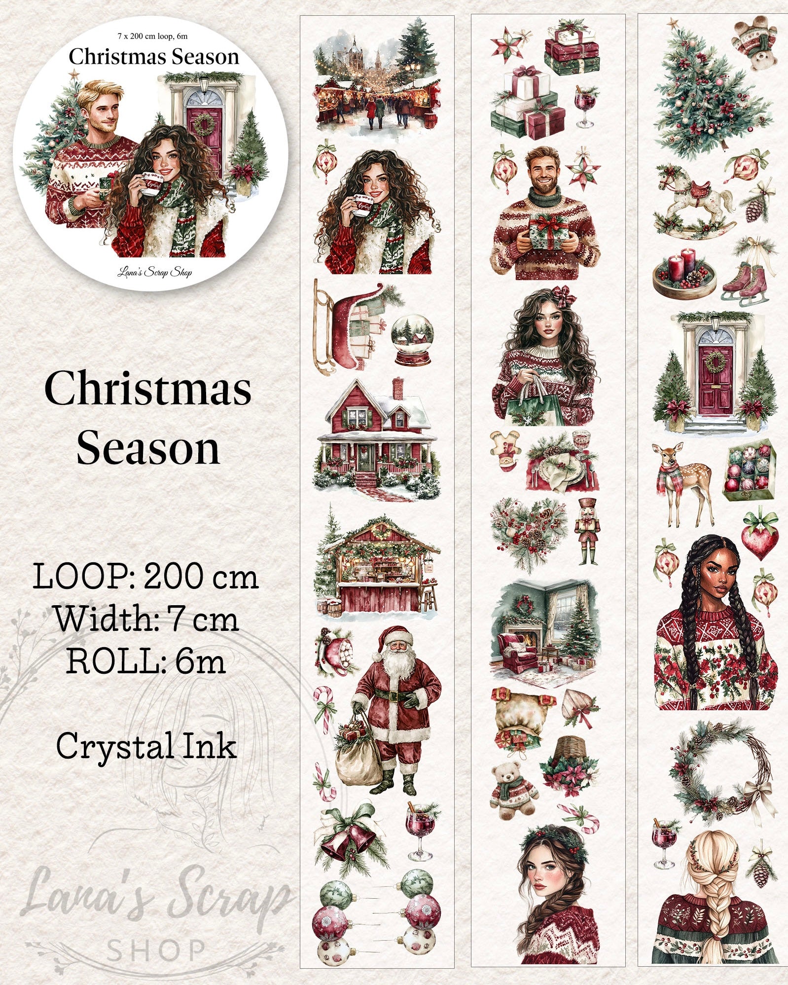De rol is 6 meter lang en 6,5 cm breed. De loop is 2 meter lang. De pettape is als rol en als loop verkrijgbaar. De pettape is gemaakt met prachtige crystal inkt.